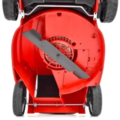 Datorită piulițelor cu mânere stea, mașina de tuns iarbă poate fi pliată cu ușurință și transportată în locul dorit folosind mânerele. Coșul furnizat este în întregime din plastic, având un volum de 45 l.
