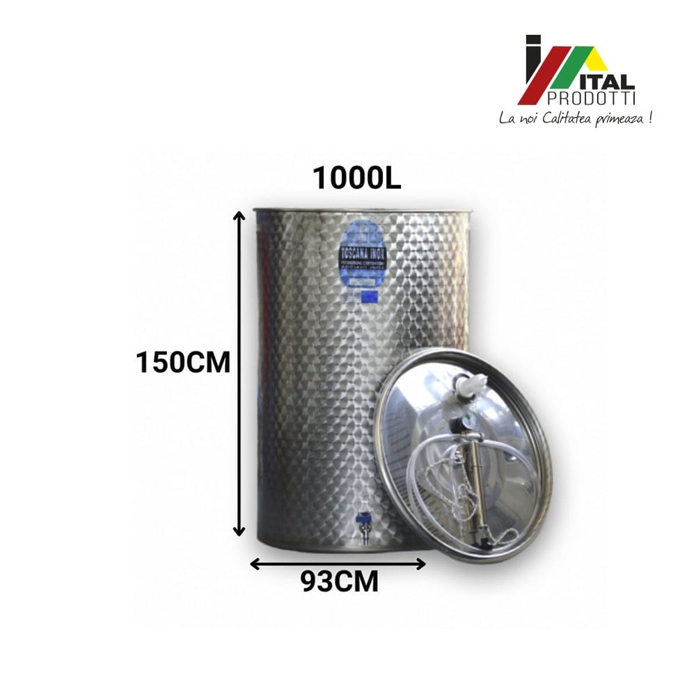 Butoiul Inox Toscana Inox de 1000 litri este alegerea ideală pentru depozitarea și păstrarea vinului, a sucurilor sau a altor lichide alimentare!