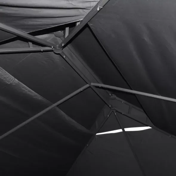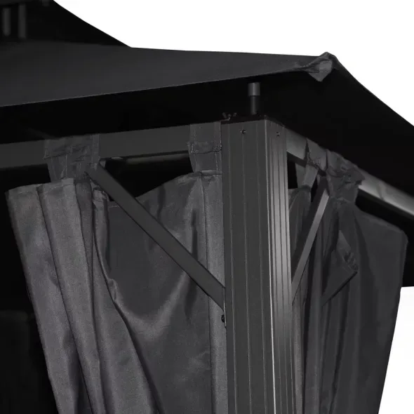 Foișor de grădină de lux cu construcție din aluminiu și oțel și învelitoare din poliester de înaltă calitate. Acesta vă va proteja în mod fiabil de soarele fierbinte, de privirile nedorite ale vecinilor sau de vântul slab.