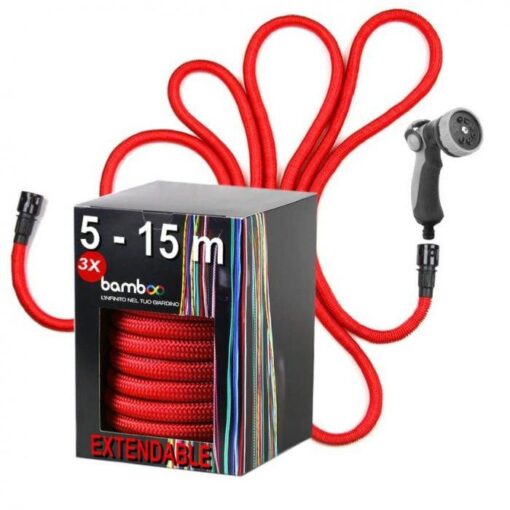 Furtunul extensibil Bamboo 5–15 m este ideal pentru cei care vor performanță fără greutate. Ușor, portabil și gata de utilizare, acest model se extinde de trei ori sub presiunea apei, iar după oprirea apei revine automat la forma sa compactă.