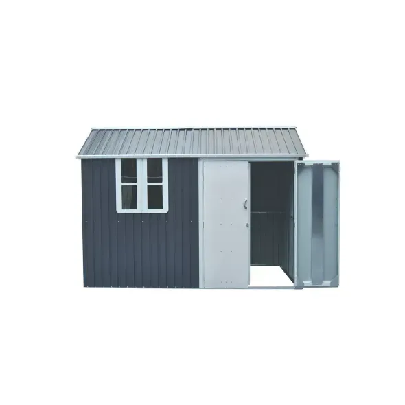 Fereastră de 69 x 71 cmCasă de grădină de înaltă calitate cu construcție galvanizată durabilă într-o combinație de gri și gri închis. Cu planul său de 1620 x 2900 mm (dimensiunile exterioare ale bazei), permite depozitarea tuturor uneltelor, echipamentelor mici de grădină și a altor materiale de grădină care trebuie păstrate uscate.