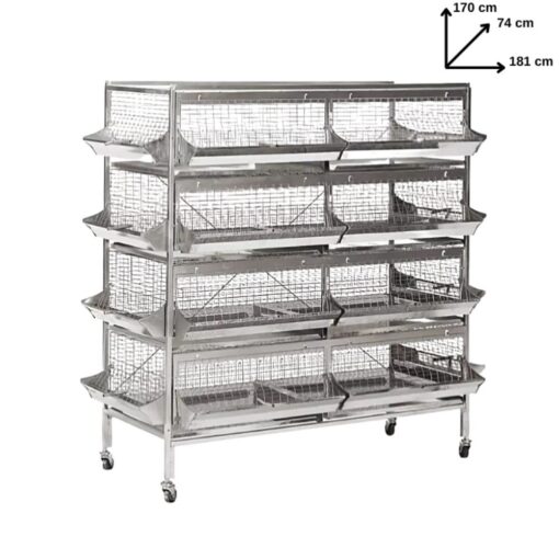 Datorita podelei duble a custilor, acestea se pot monta inepand cu un nivel pana la 4 nivele, doar prima cusca de jos are nevoie de un suport de sustinere. Practic custile se aseaza pur si simpu una peste alta, astfel se formeaza module cu cate nivele se doreste.