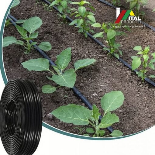 Tubul de irigare prin picurare este confectionat din polietilena de inalta calitate, cu diametrul de 16 mm si grosime de 1 mm.
